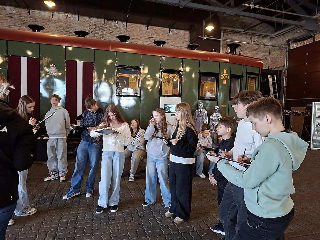 Rīgas dzelzceļa muzejā abām klasēm bija sagatavota foto orientēšanās nodarbība “Izzini dzelzceļu muzejā”. Apskatījām dažādas ekspozīcijas gan ārā, gan iekštelpās. Kopumā bija interesanti iepazīt dažādus vilcienu vagonus, uzzināt, kādi tie bija agrāk, un iedziļināties to vēsturē.