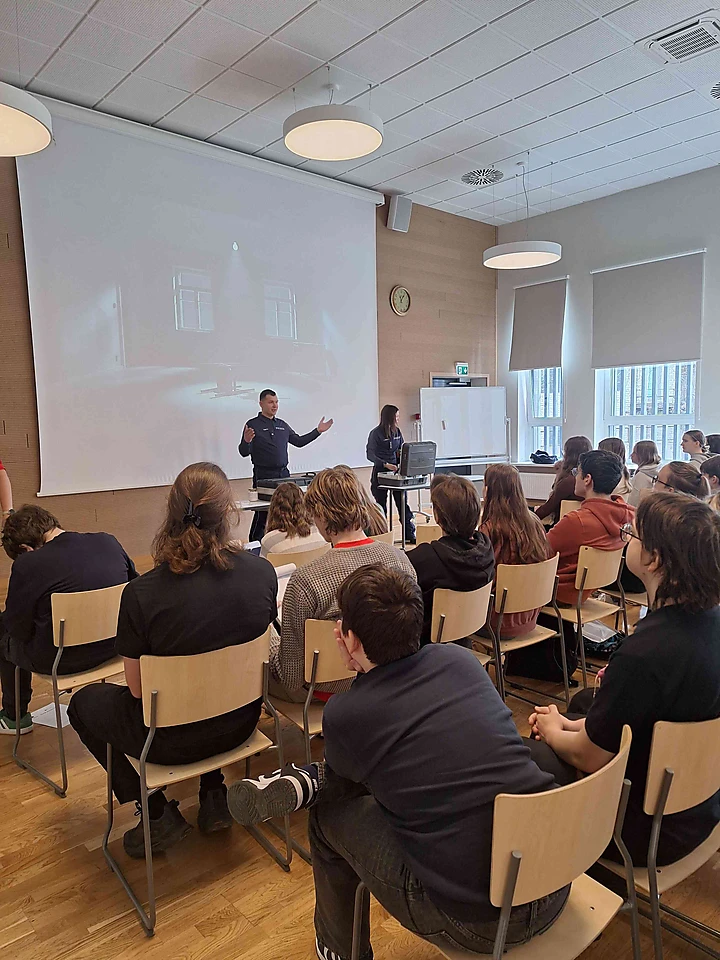 Valsts policijas Galvenās kriminālpolicijas pārvaldes Kriminālistikas pārvaldes Reģionu biroja Zemgales nodaļas vecākais eksperts Eduards Manavickis un vecākā inspektore krimināliste Lauma Parce ļāva skolēniem iejusties kriminālista lomā. Jaunieši uzzināja, ar kādu tehniku un materiāliem strādā šīs profesijas pārstāvji, kā tiek meklēti un izņemti pirkstu un apavu nospiedumi, kā arī paši varēja izgatavot savus pirkstu nospiedumus.