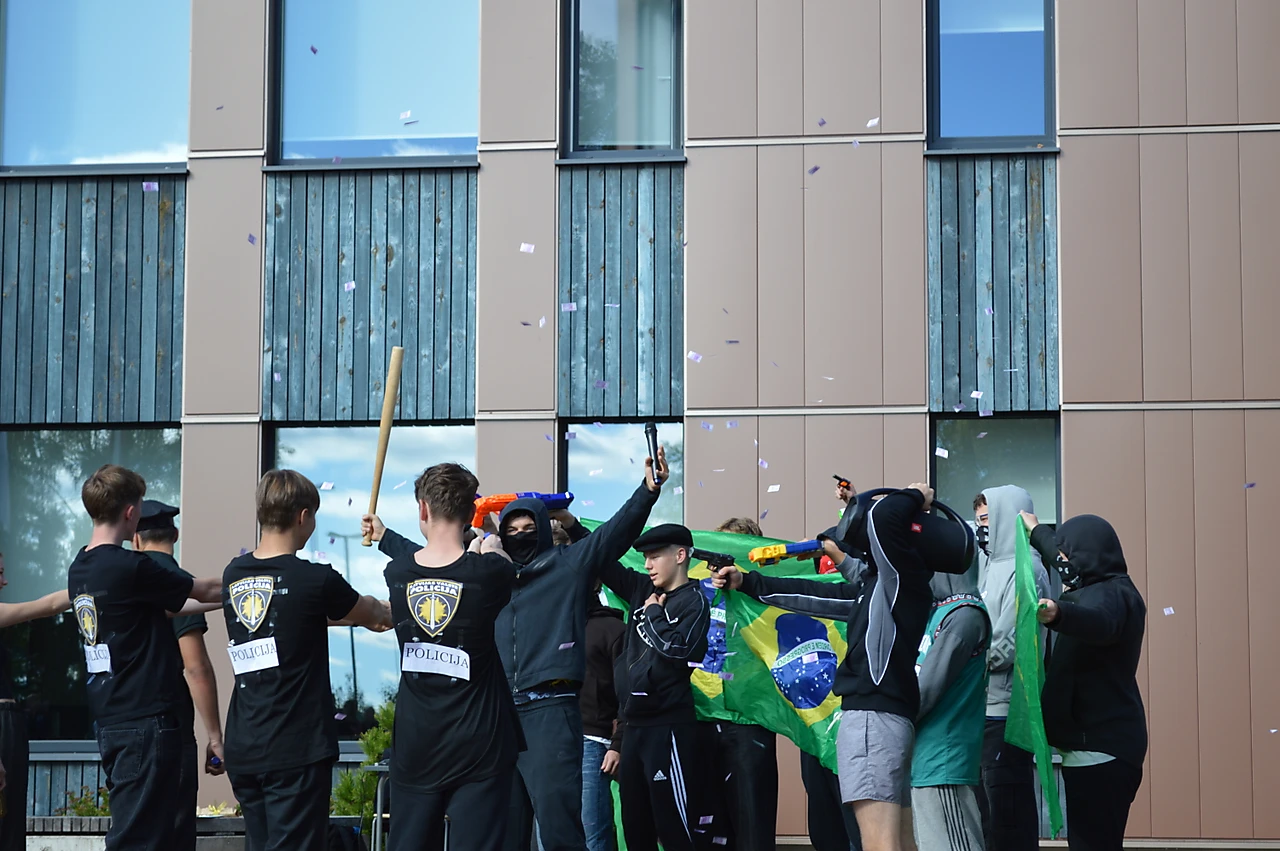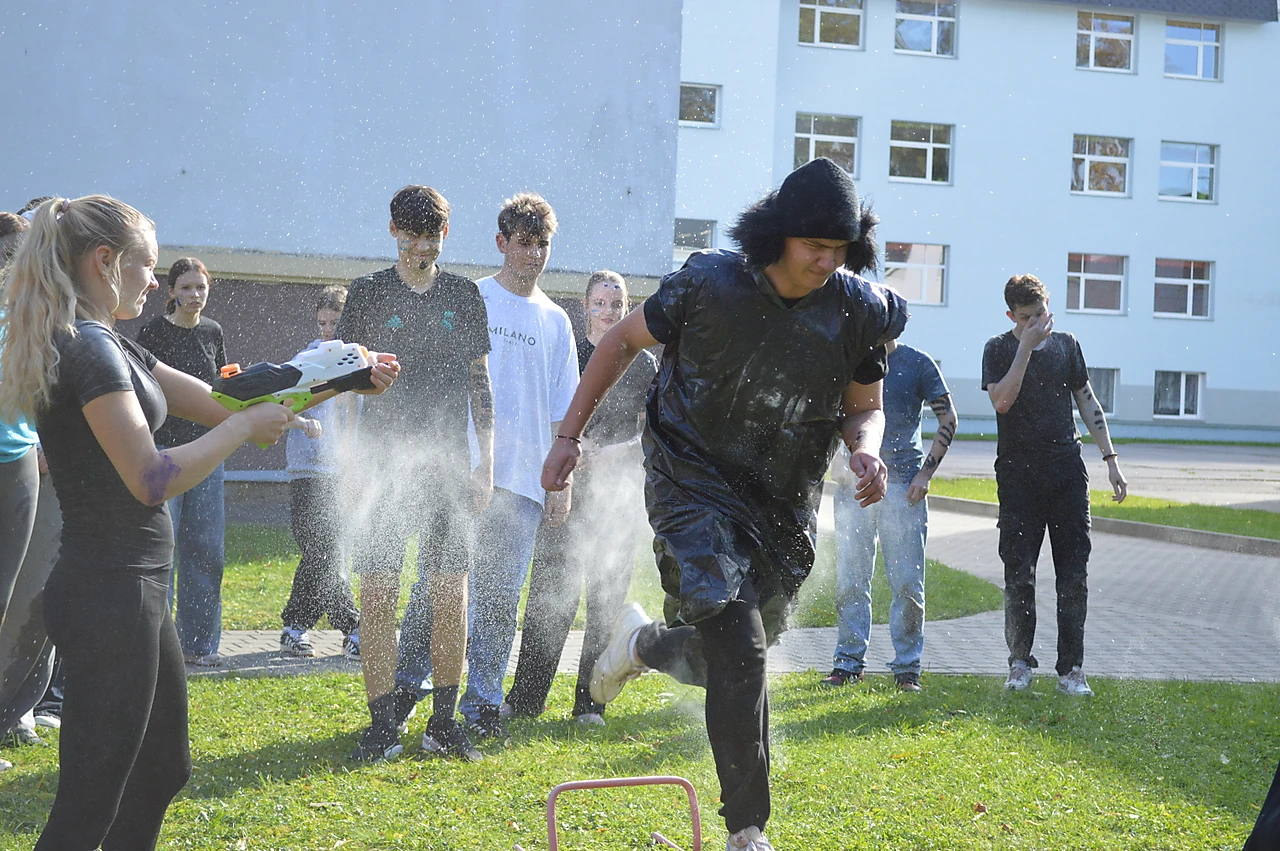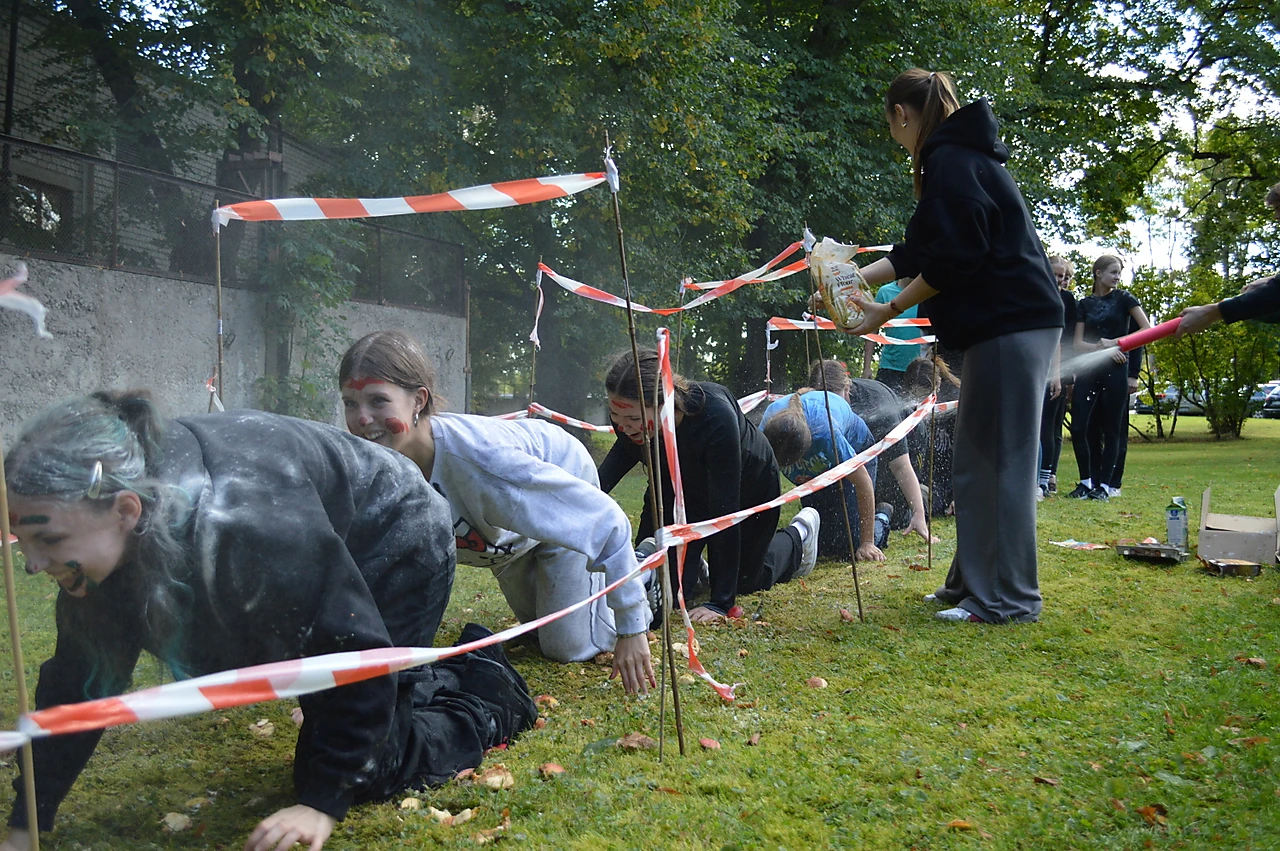 Pēc priekšnesumiem klases devās pildīt dažādus uzdevumus. Bija gan jāšļūc no kalniņa ar miskastes maisu, gan spēka pārbaude, gan baskāju taka. Protams, kā jau iesvētībās, skolēni un klašu audzinātāji tika iesvētīti ar miltiem un citām vielām.