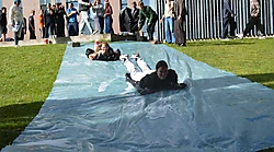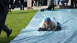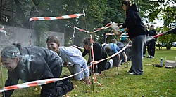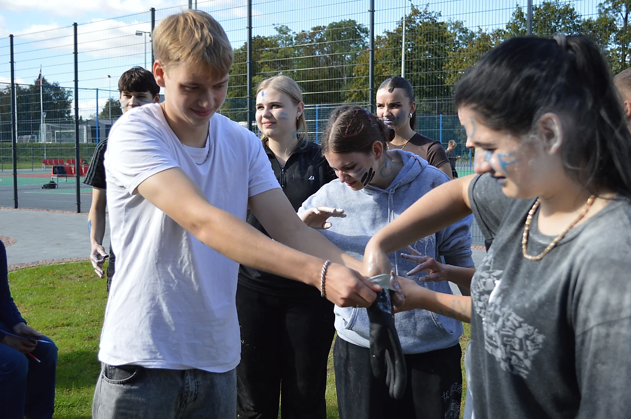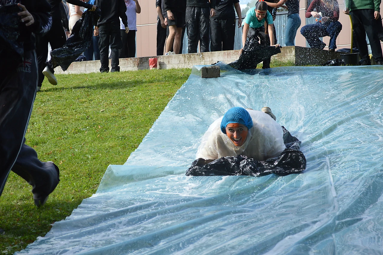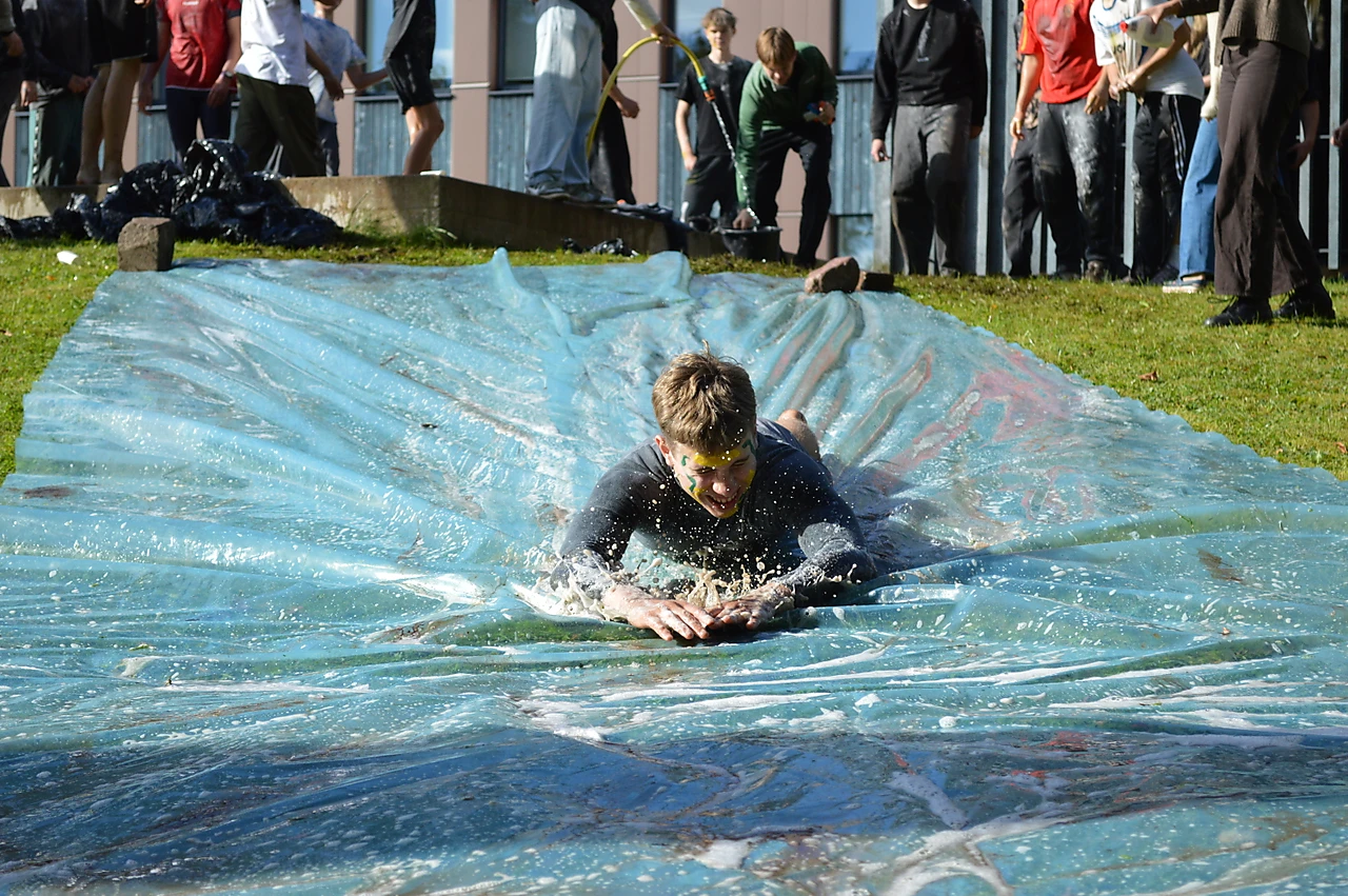 Pēc priekšnesumiem klases devās pildīt dažādus uzdevumus. Bija gan jāšļūc no kalniņa ar miskastes maisu, gan spēka pārbaude, gan baskāju taka. Protams, kā jau iesvētībās, skolēni un klašu audzinātāji tika iesvētīti ar miltiem un citām vielām.