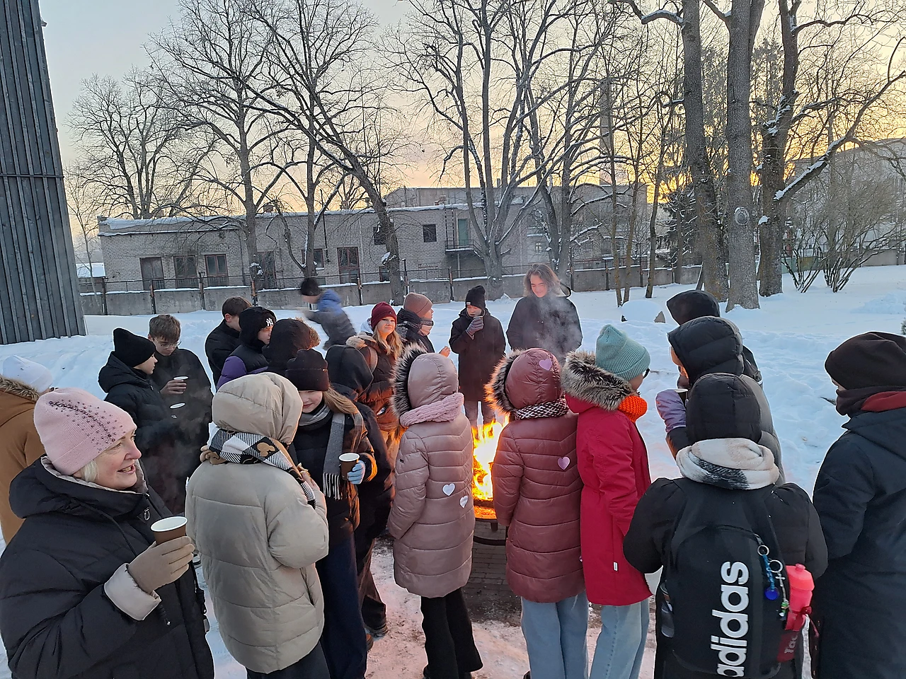 Šorīt, neraugoties uz ziemas spelgoni, ģimnāzijas saime pulcējās ap ugunskuru, lai pieminētu tos, kuri ar savu drosmi un neatlaidību nosargāja Latvijas brīvību barikāžu laikā pirms 35 gadiem.