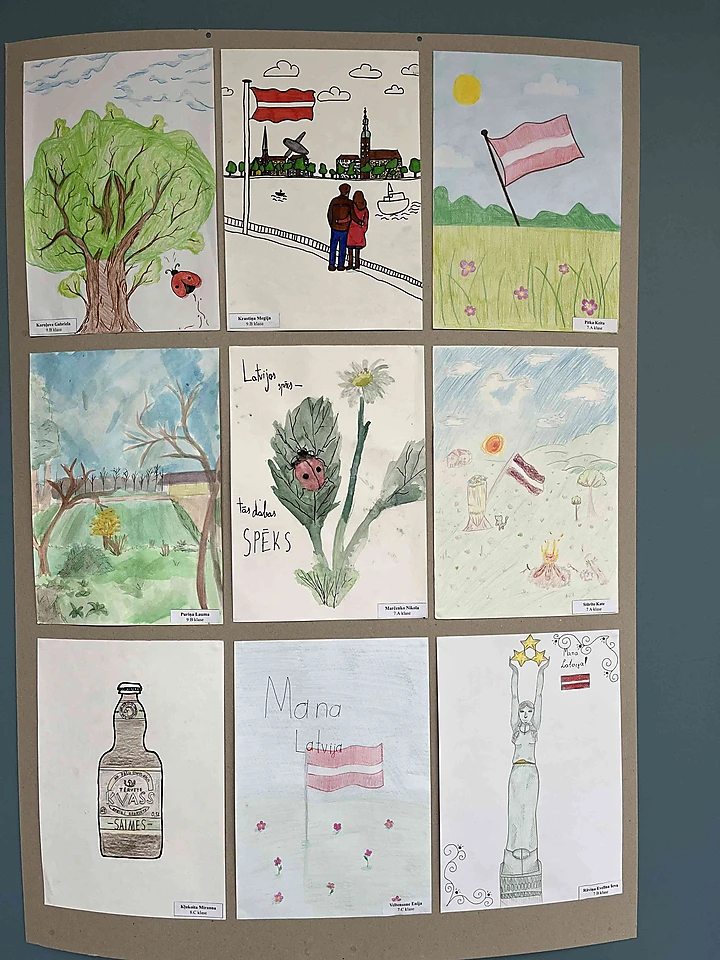Mūsu skolēni ir radījuši krāsainus un sirsnīgus zīmējumus, kuros atspoguļojas Latvijas daba, tradīcijas un patriotisma izjūta. Jaunie mākslinieki savos darbos izceļ to, kas viņiem Latvijā ir vismīļākais un nozīmīgākais.