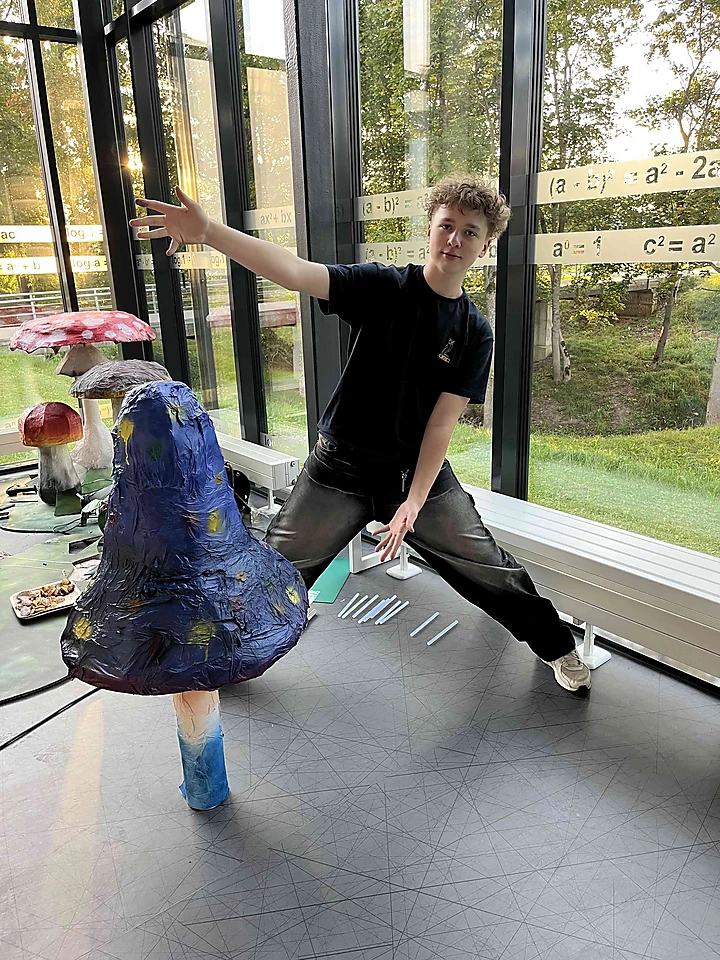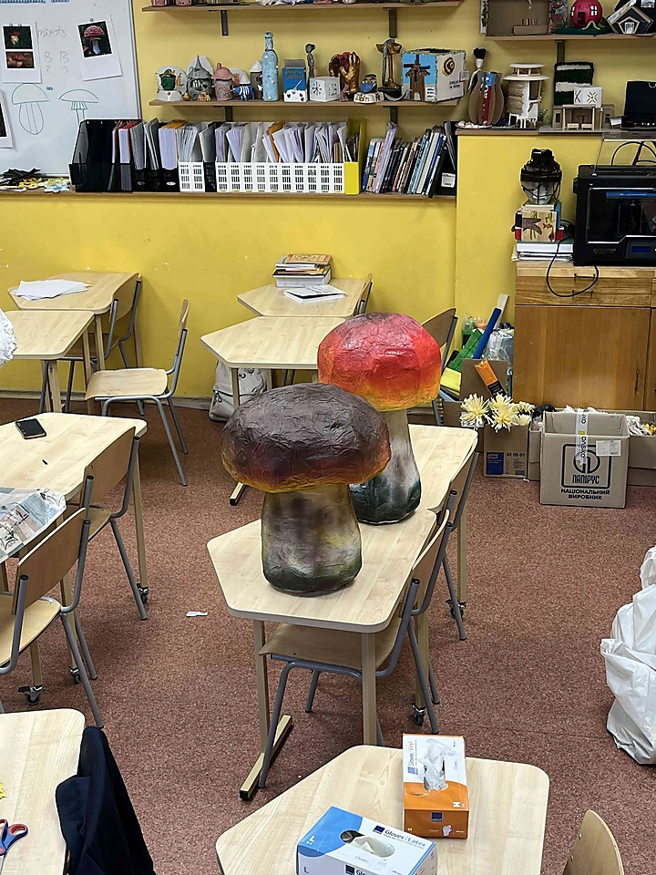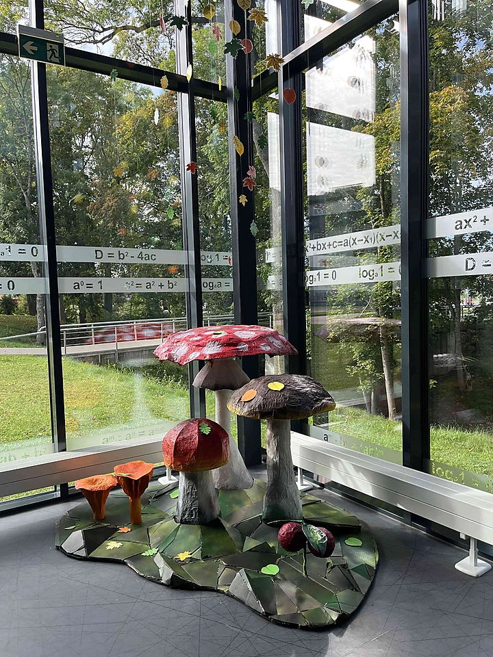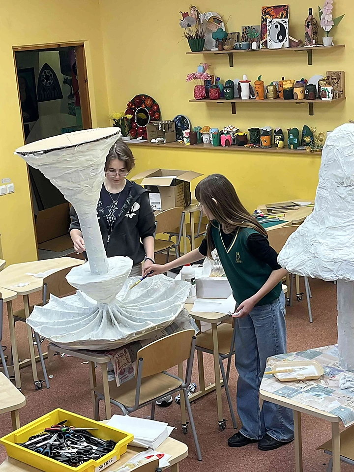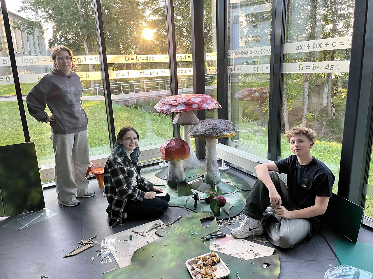 Modernās mākslas pulciņa dalībnieki septembrī radīja lielformāta instalāciju “Sēnes”. Darbs tapis no otrreizējiem materiāliem – kartona un žurnāliem, kas sākotnēji bija paredzēti izmešanai. Projekta mērķis bija attīstīt radošu pieeju materiālu pārstrādei un veicināt vides apziņu.