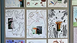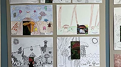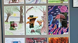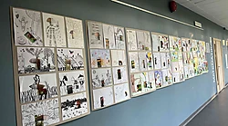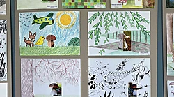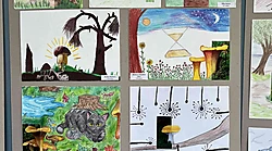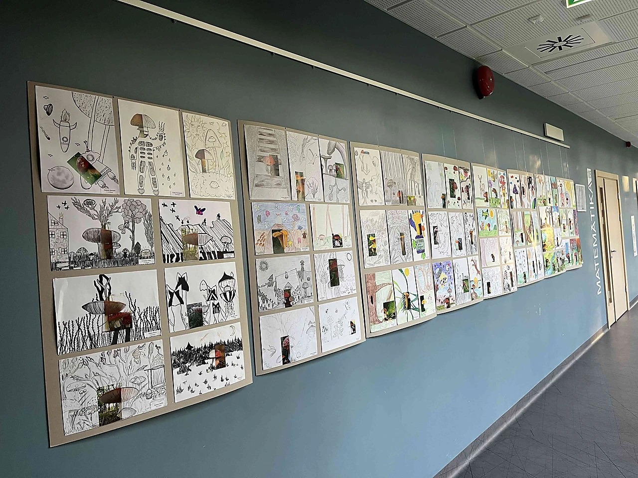 Skolēnu darbus iespējams apskatīt DzMC gaitenī pie sienas.
