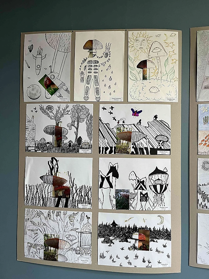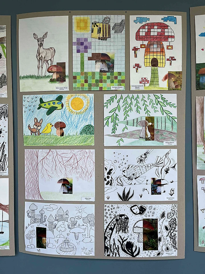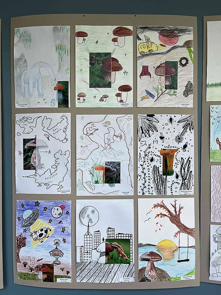Savukārt kā iesildošais uzdevums pēc vasaras brīvlaika vizuālās mākslas stundā 7.–9. klašu skolēniem bija jāturpina zīmēt sēni un jāizveido tai reālistiska vai fantāzijas vide. Paldies skolēniem par radošumu un iesaisti!
