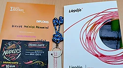 "Biksiņš, Maisiņš, Piekariņš" prezentēja dabā pašu atrastas 2. Pasaules kara patronas pārveidotas par piekariņiem un SMU direktora Aksela Simkina šūtās somas no otreizlietojamiem džinsiem.