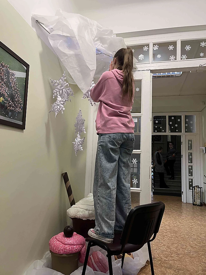 Skolas ikgadējā tradīcija dekorēt skolu Ziemassvētkiem parasti ir 10. klašu uzdevums, tomēr šogad tajā iesaistījās ievērojami vairāk cilvēku.
