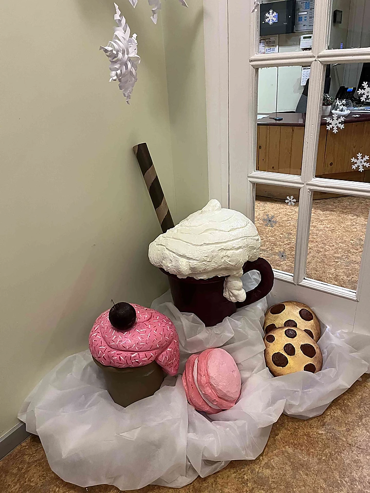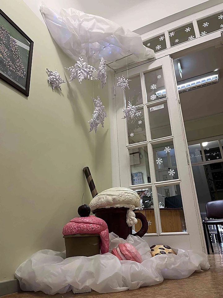 Modernās mākslas pulciņš izveidoja arī divas mākslas ekspozīcijas, sekojot līdzi aktuālajām modes tendencēm pasaulē — tika radīti lielformāta saldumi. Īpašs paldies Elīnai Karslonei par kakao tases izveidi, Kristai Karslonei par kēksa izveidi un Paulai Mazkristei par piparkūku izveidi. Kā mazās fejas visur klātesošas un atbalstošas bija arī 7.klašu skolnieces Nikola Marčenko un Maija Meiere.