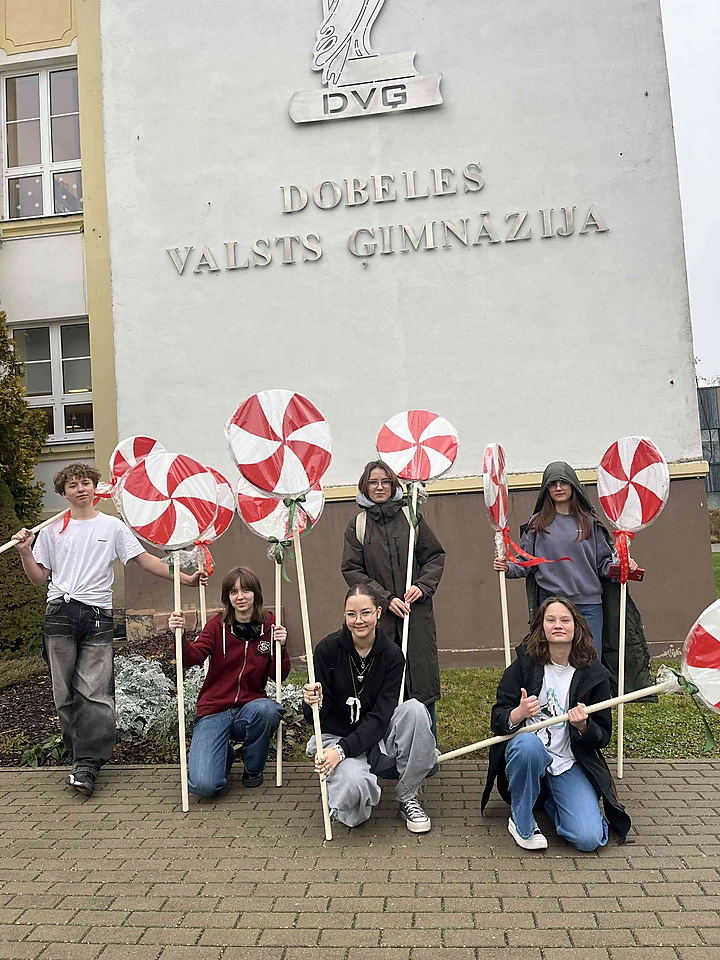 Modernās mākslas pulciņš izveidoja un nokrāsoja divas pirmās kārtas lielformāta karamelēm, kas bija pamanāmas gan pie skolas ieejas, gan apstādījumos ap skolu. Savukārt beigu triepienus veica citu klašu skolēni. Ledenīšu veidošanā iesaistījās ļoti daudz čaklu roku — skolēni paši izteica vēlmi palīdzēt, par ko viņiem liels paldies. Īpašu paldies sakām Alisei Kaminskai, Patrikam Tosteram un Ksenijai Ivanovai.