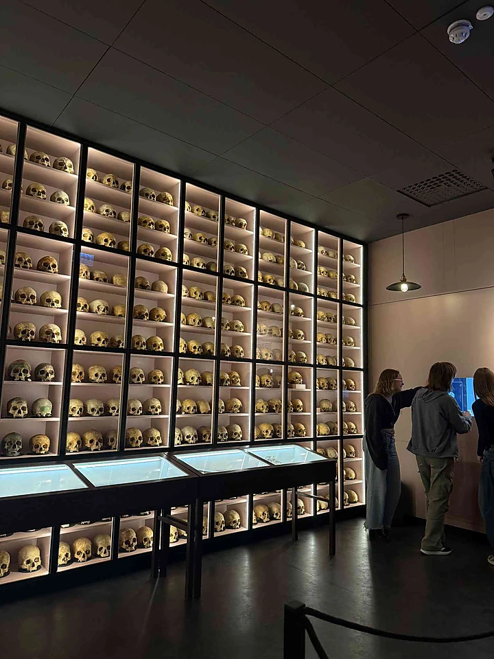 Tālāk devāmies uz RSU Anatomijas muzeju, kur mūs gaidīja gan skeleti un orgāni, gan unikāli vēsturiski eksponāti, kas ļāva ieraudzīt cilvēka ķermeni no pavisam cita skatpunkta. Mēs iedziļinājāmies cilvēka organisma uzbūvē un tā sarežģītībā, kā arī atklājām, cik nozīmīga bijusi medicīnas attīstība.