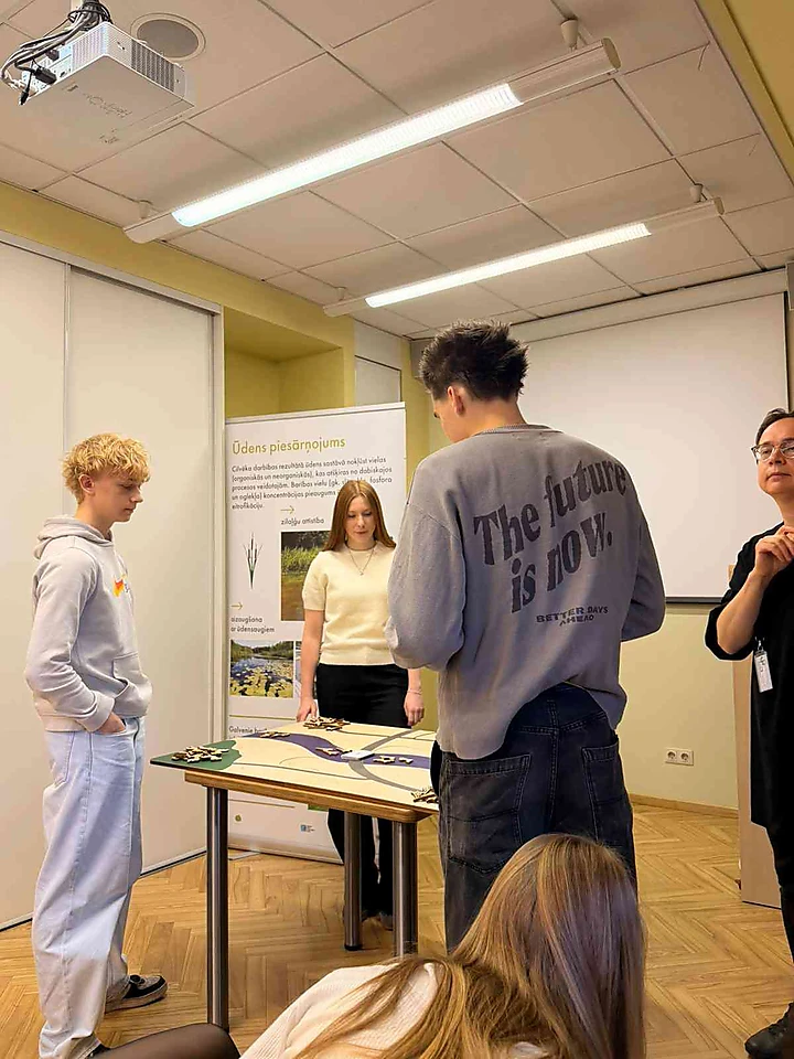 Mūsu ceļojums sākās Latvijas Nacionālajā dabas muzejā, kur ESF Plus projekta Nr. 4.2.2.1/1/25/I/001 “STEM un pilsoniskās līdzdalības norises plašākai izglītības pieredzei un karjeras izvēlei” ietvaros piedalījāmies nodarbībā “Ūdens piesārņojums”. Tajā uzzinājām, cik liela nozīme ir tīram ūdenim un kā cilvēku rīcība var ietekmēt gan dabu, gan veselību. Mēs diskutējām par ikdienas paradumiem, meklējām risinājumus, kā saglabāt ūdens resursus nākotnei, un ar dažādu uzdevumu palīdzību labāk sapratām, cik nozīmīga ir mūsu līdzdalība vides aizsardzībā.