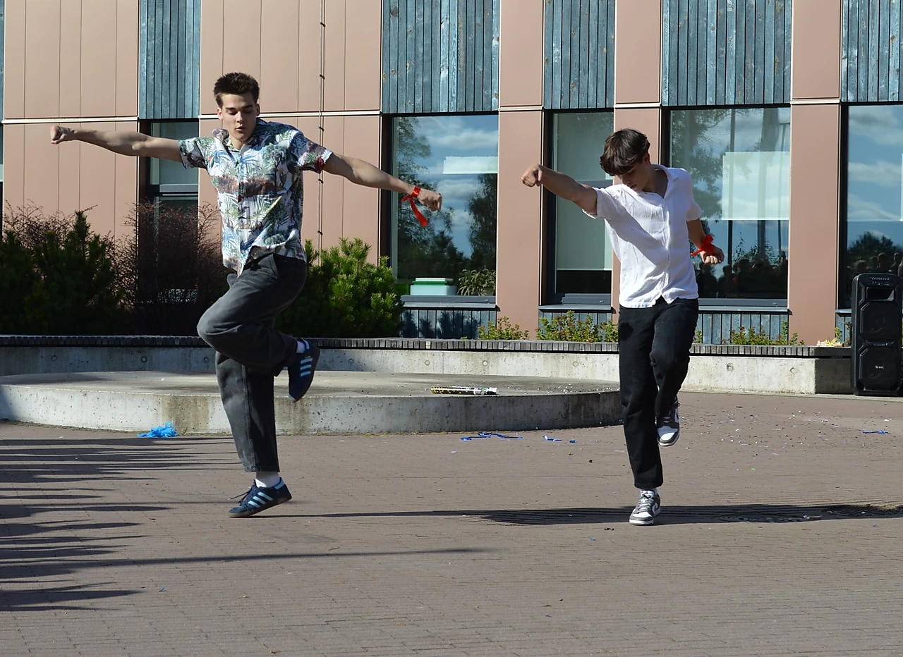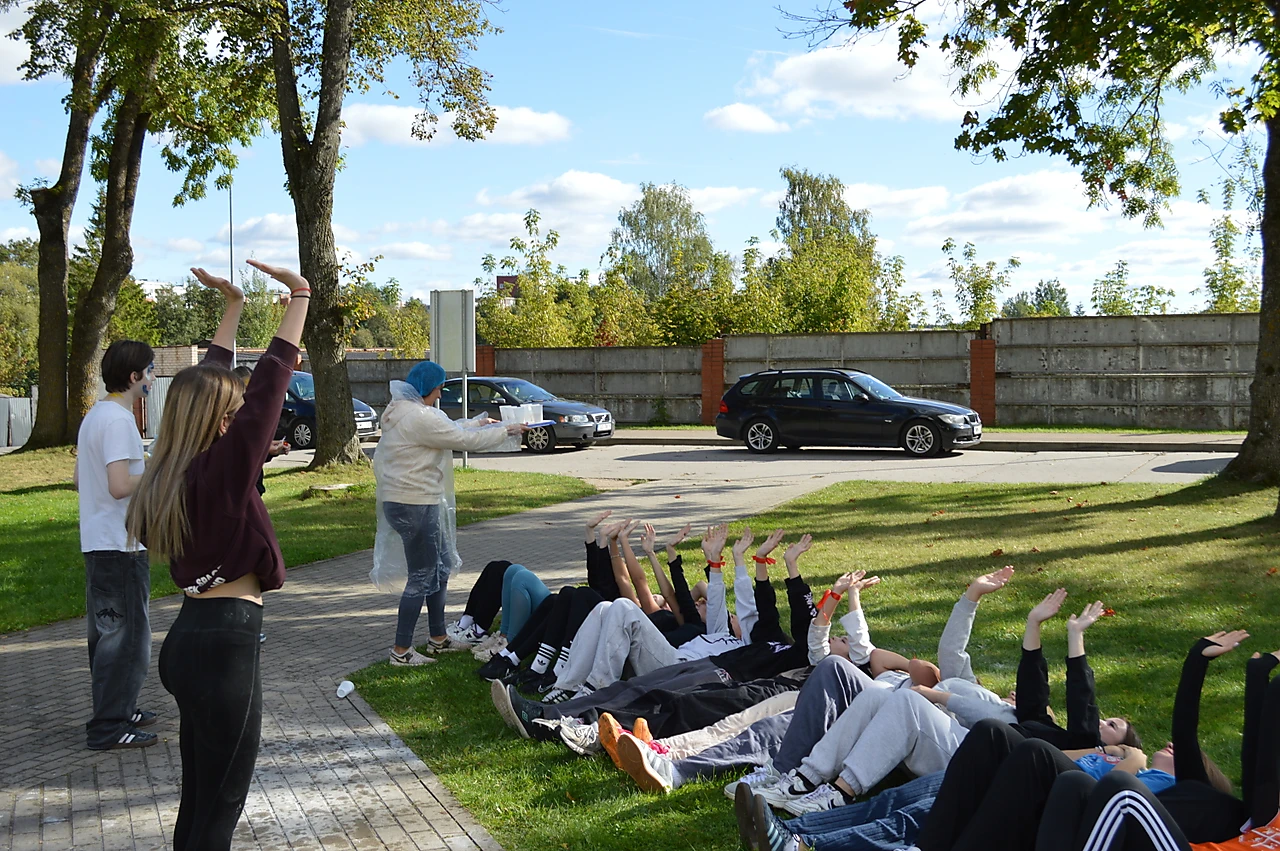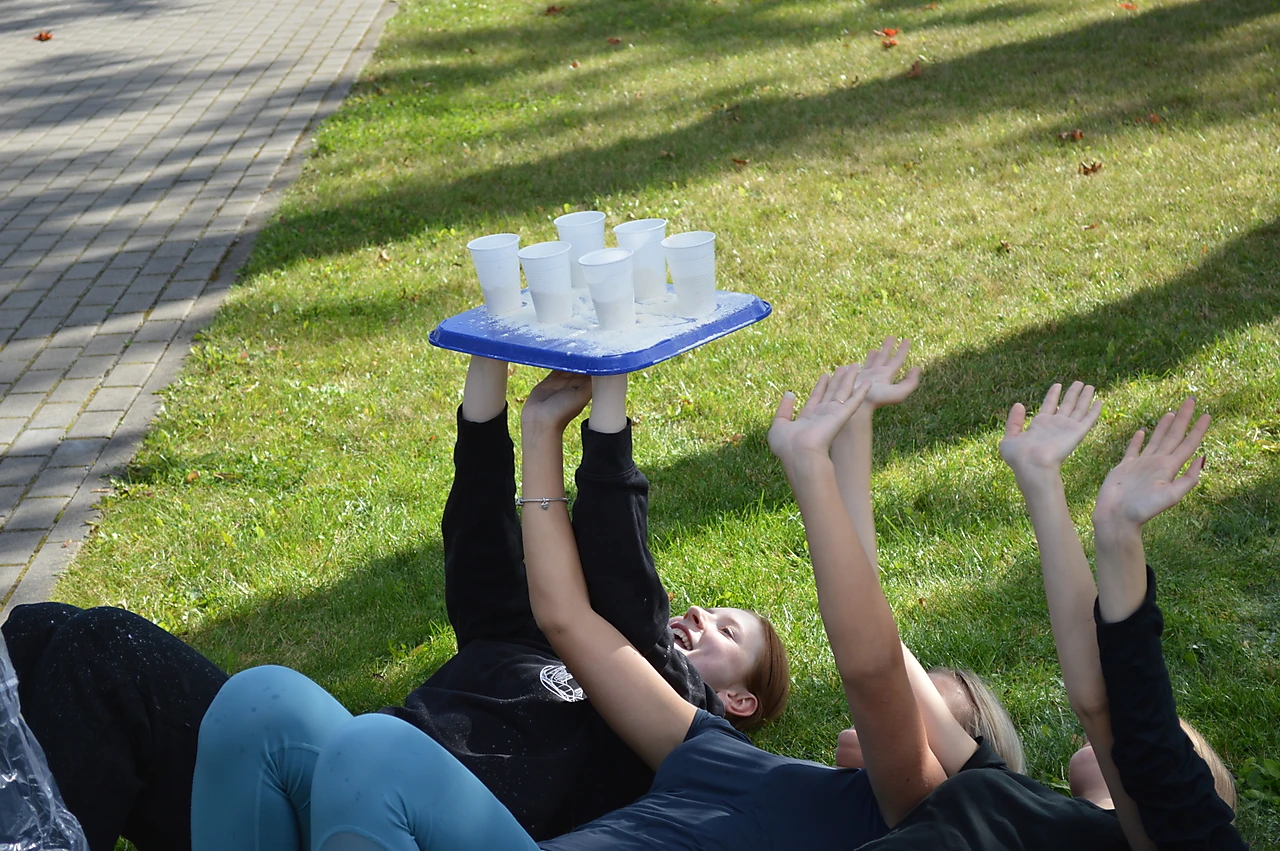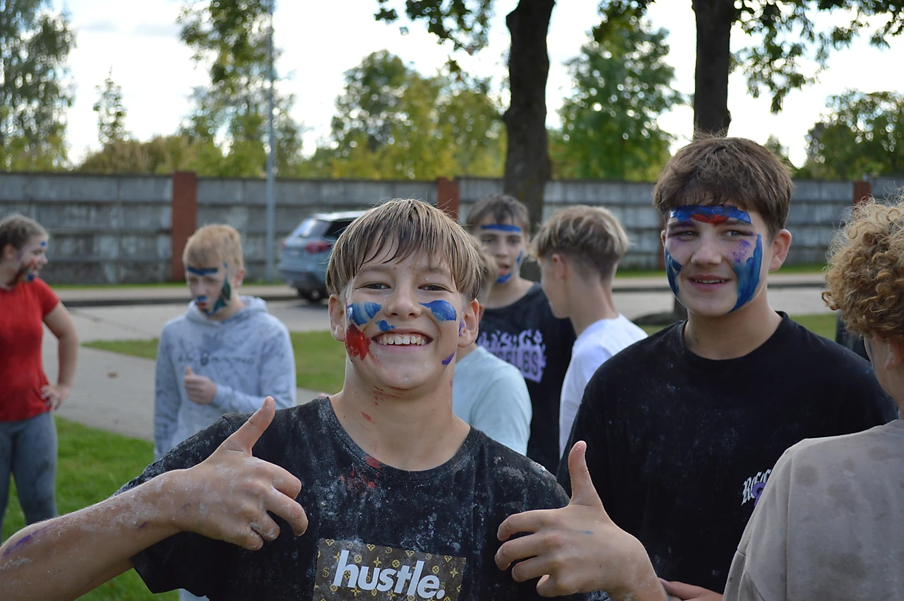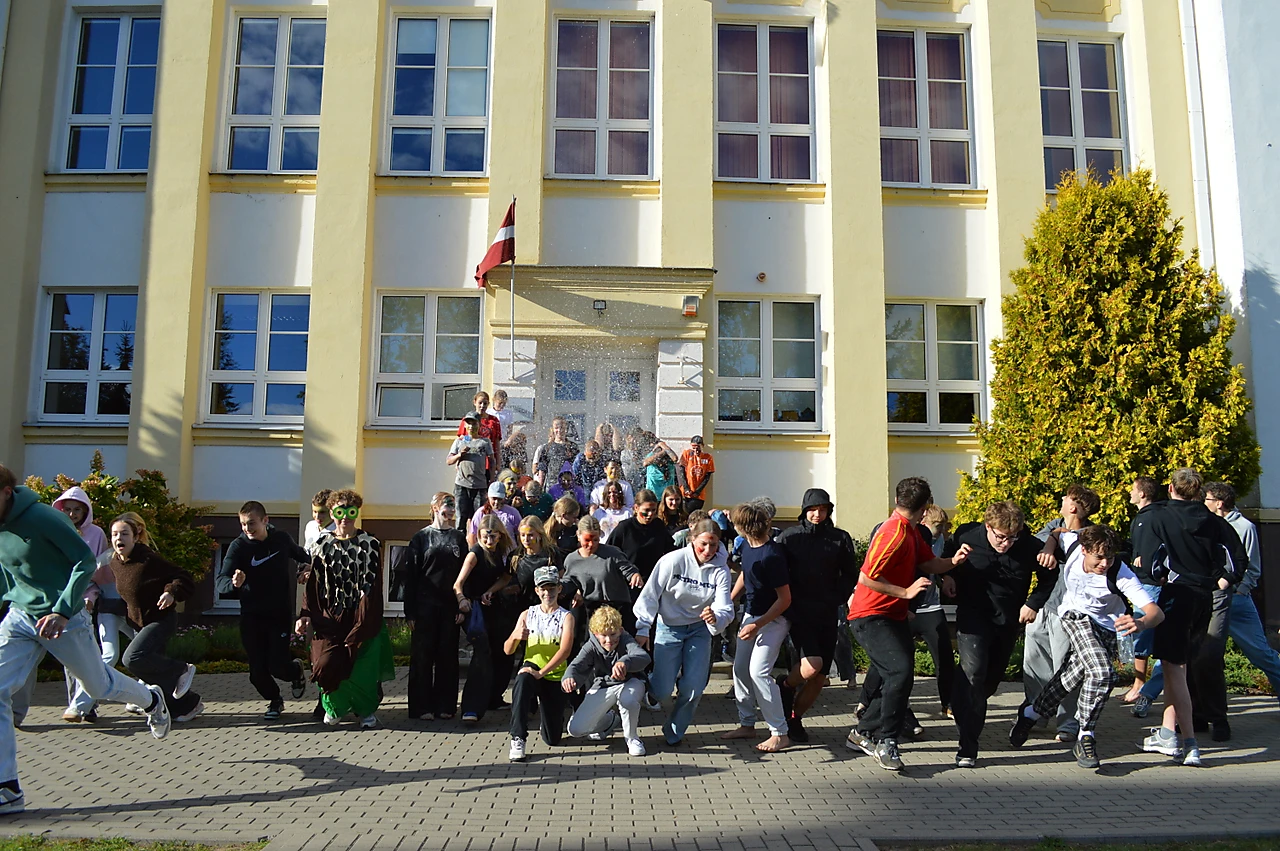 Pēc priekšnesumiem klases devās pildīt dažādus uzdevumus. Bija gan jāšļūc no kalniņa ar miskastes maisu, gan spēka pārbaude, gan baskāju taka. Protams, kā jau iesvētībās, skolēni un klašu audzinātāji tika iesvētīti ar miltiem un citām vielām.