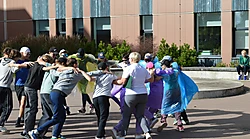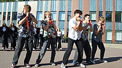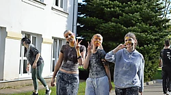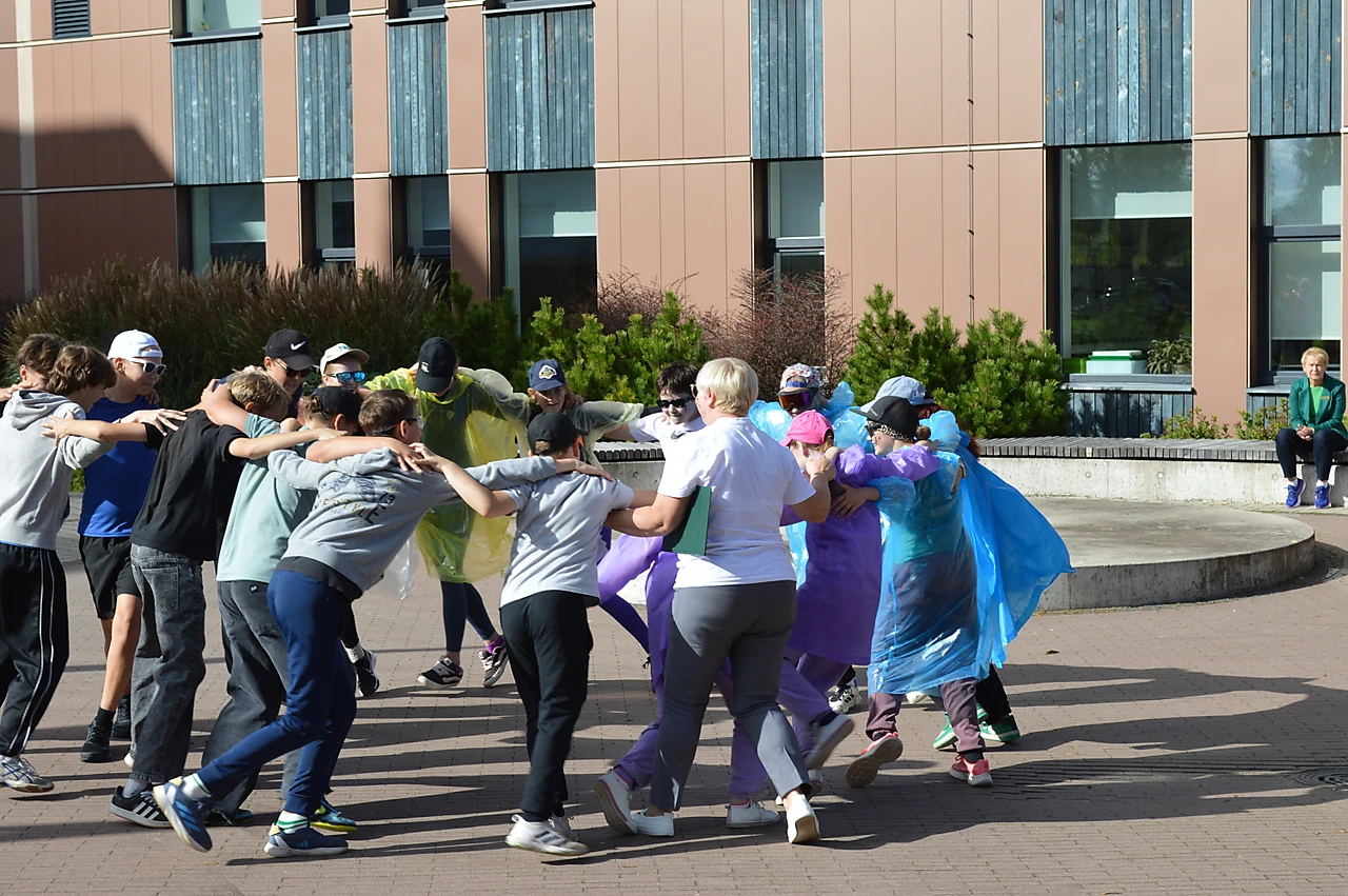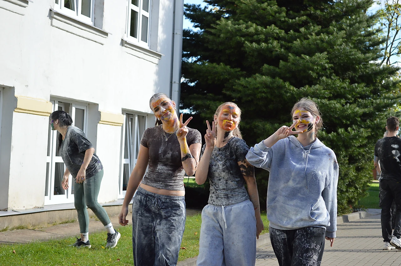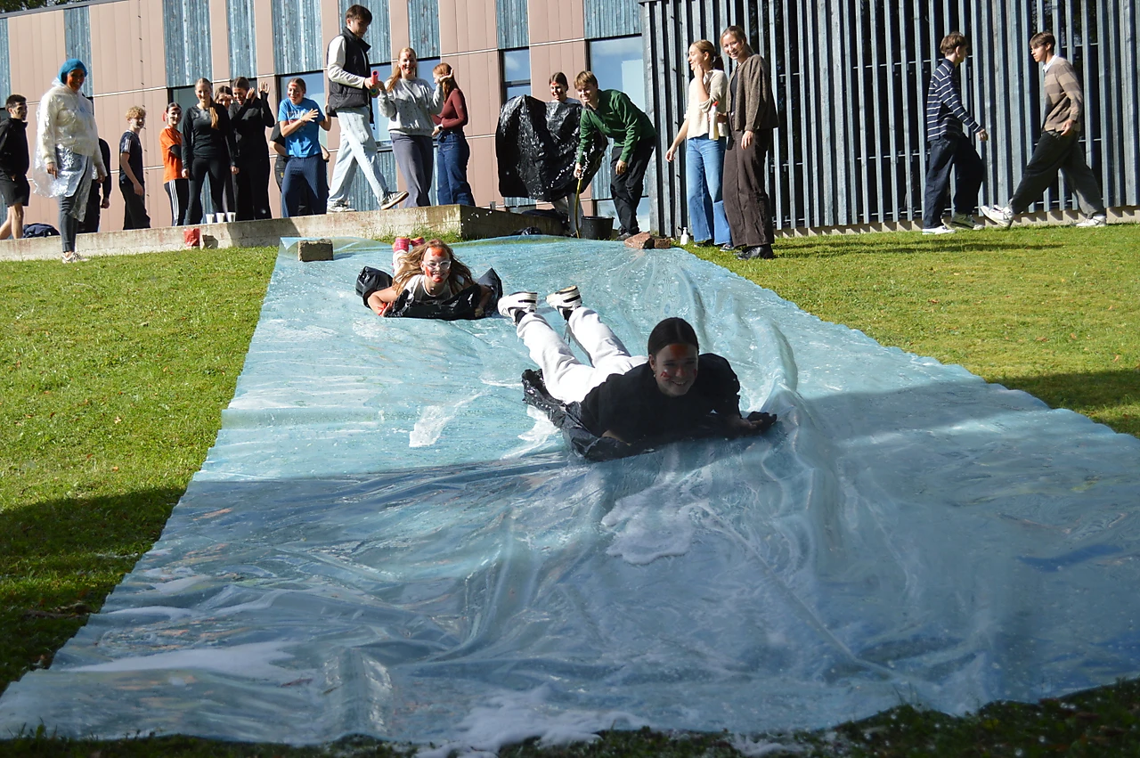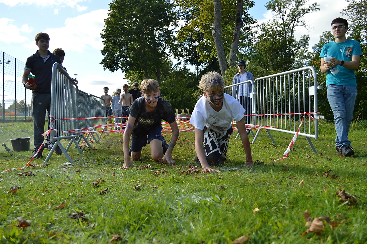 Pēc priekšnesumiem klases devās pildīt dažādus uzdevumus. Bija gan jāšļūc no kalniņa ar miskastes maisu, gan spēka pārbaude, gan baskāju taka. Protams, kā jau iesvētībās, skolēni un klašu audzinātāji tika iesvētīti ar miltiem un citām vielām.