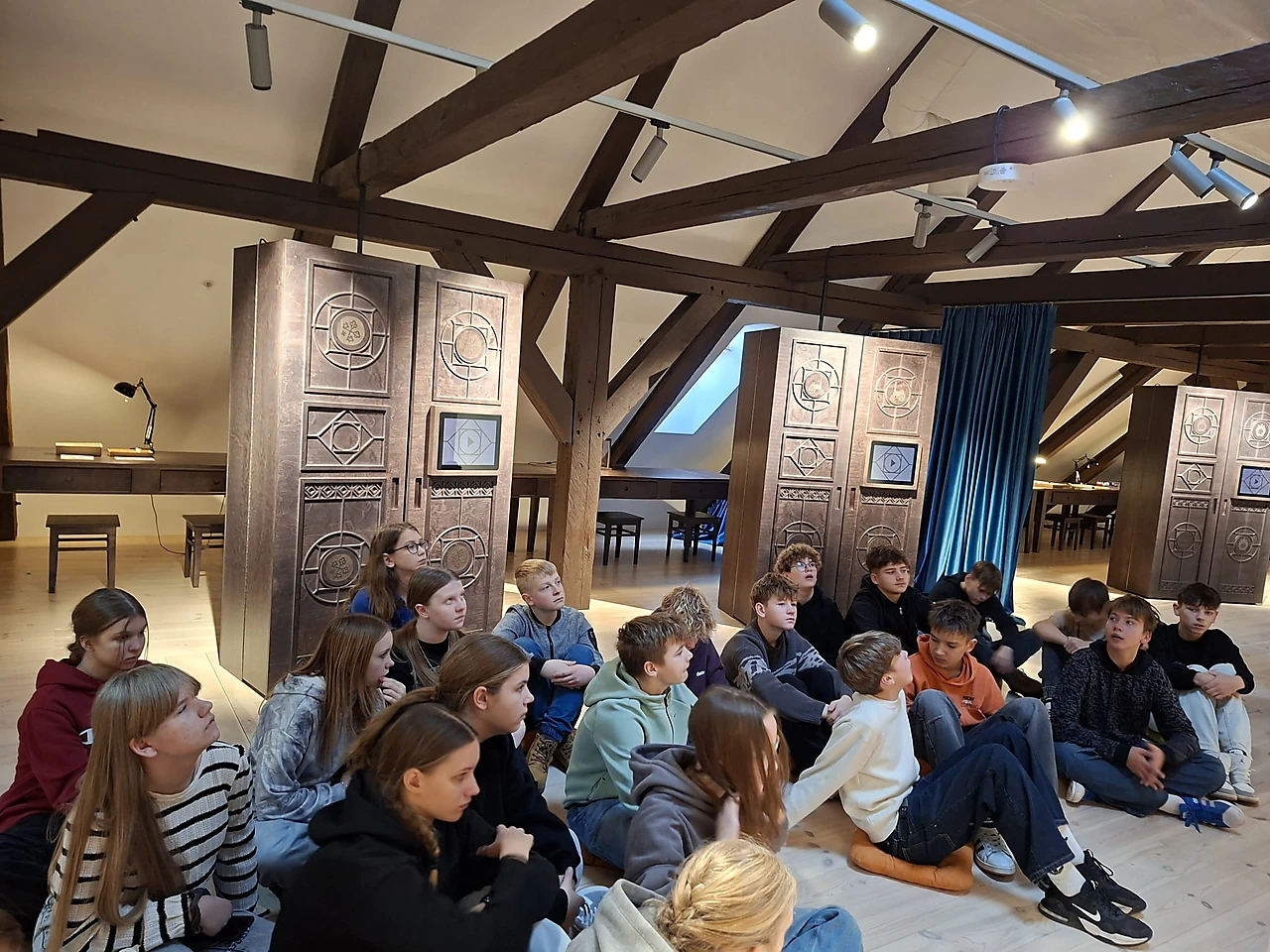 Nodarbība muzejā tika organizēta projekta “Latvijas skolas soma” ietvaros. Jauniešiem īpaši patika darbs grupās ar spēles elementiem.