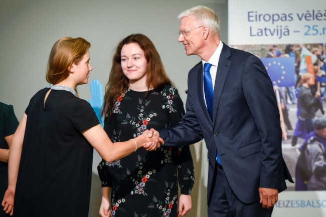 Eiropas dienā 12. klašu skolēniem vēstnieki stāstīja par Eiropas Savienības vērtībām un mudināja par tām balsot.