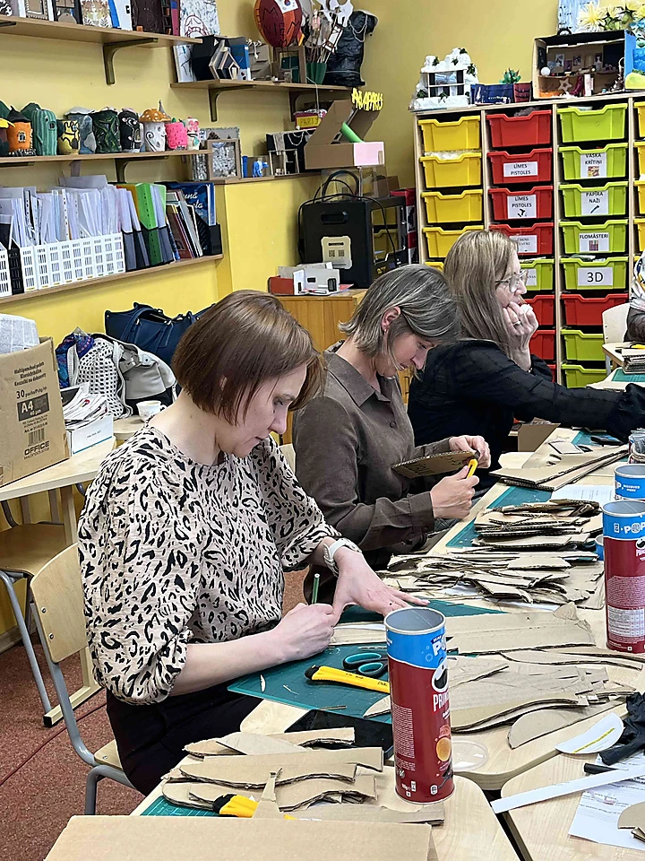 Meistarklases mērķis bija iepazīstināt pedagogus ar praktisku pārradīšanas uzdevumu, kurā no “Pringles” čipsu iepakojuma tika veidota funkcionāla vāze. Dalībnieki analizēja, kāpēc ikdienas iepakojums bieži ir grūti pārstrādājams dažādu materiālu kombināciju dēļ un kā dizaina pieeja ļauj pagarināt materiāla lietošanas laiku. Meistarklases laikā tika veikta ideju skicēšana un konstrukcijas plānošana, izvērtēta izstrādājuma stabilitāte un drošība, izvēlēti apdares risinājumi, kā arī apspriesta praktiskā lietošana, piemēram, ieliktnis ūdenim vai stikla trauks, lai objekts būtu droši lietojams. Noslēgumā notika darbu prezentēšana un refleksija par ilgtspējas ieguvumiem un iespējām līdzīgus uzdevumus izmantot skolēnu dizaina projektos.