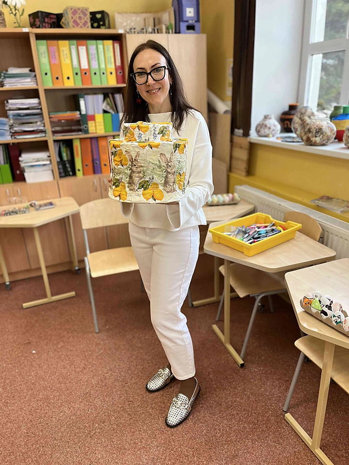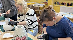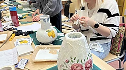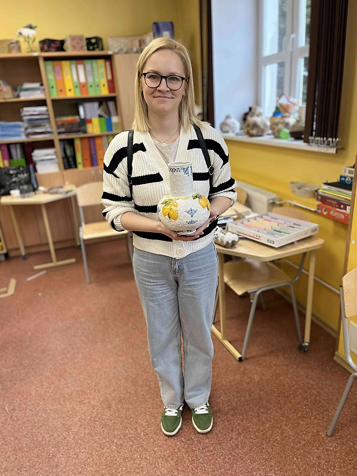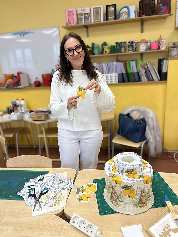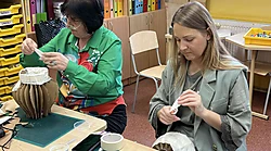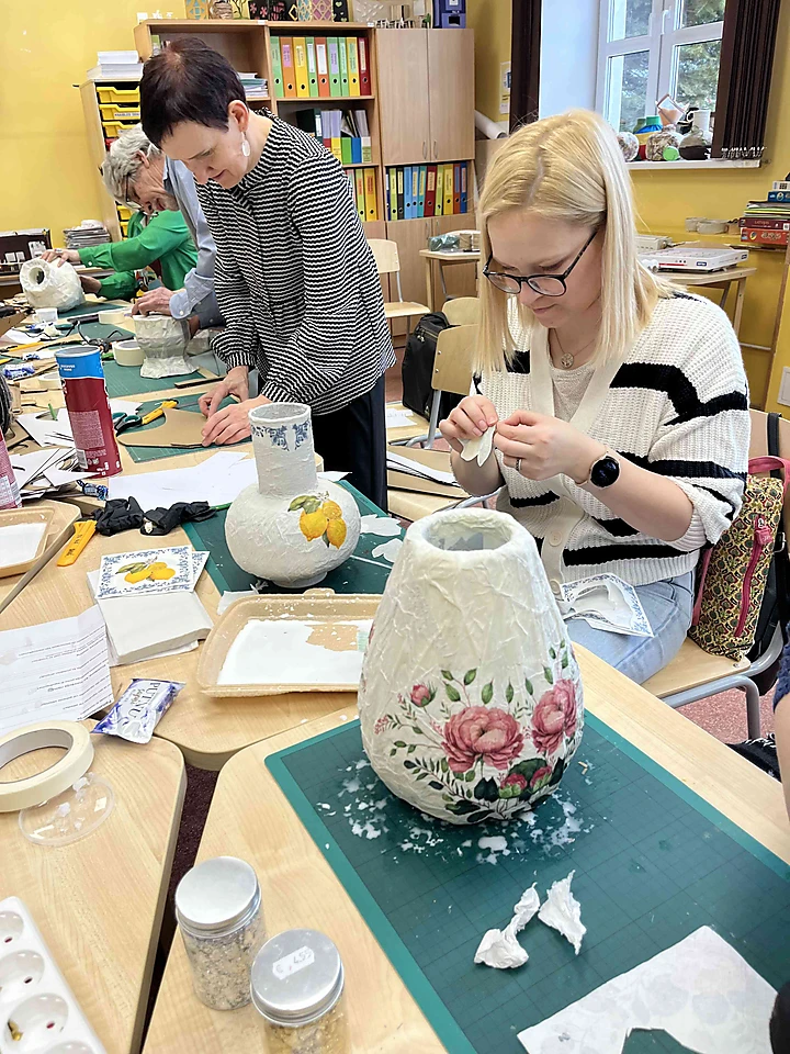 Meistarklasē piedalījās 14 pedagogi, un katrs veiksmīgi izveidoja savu Lieldienu vāzi.