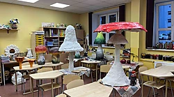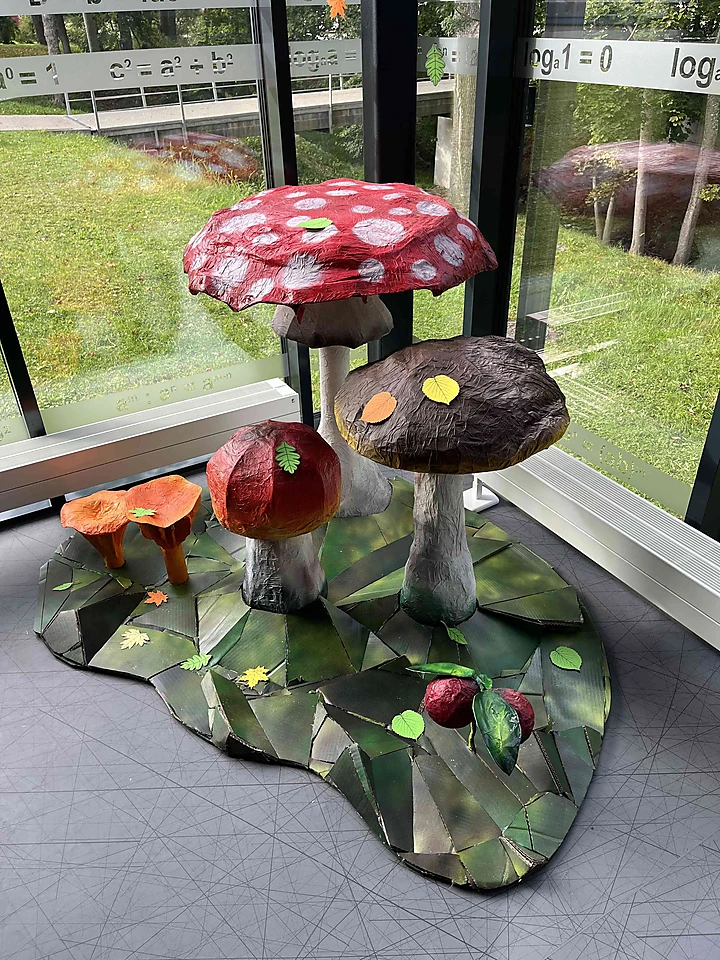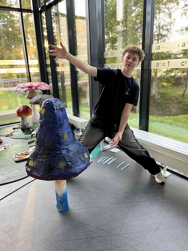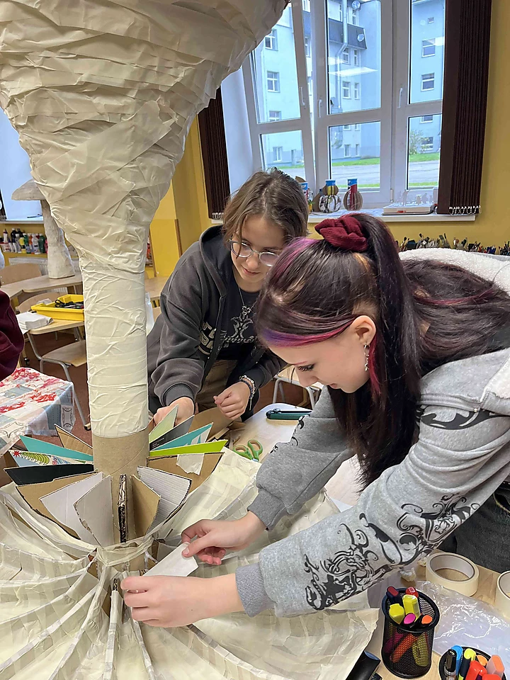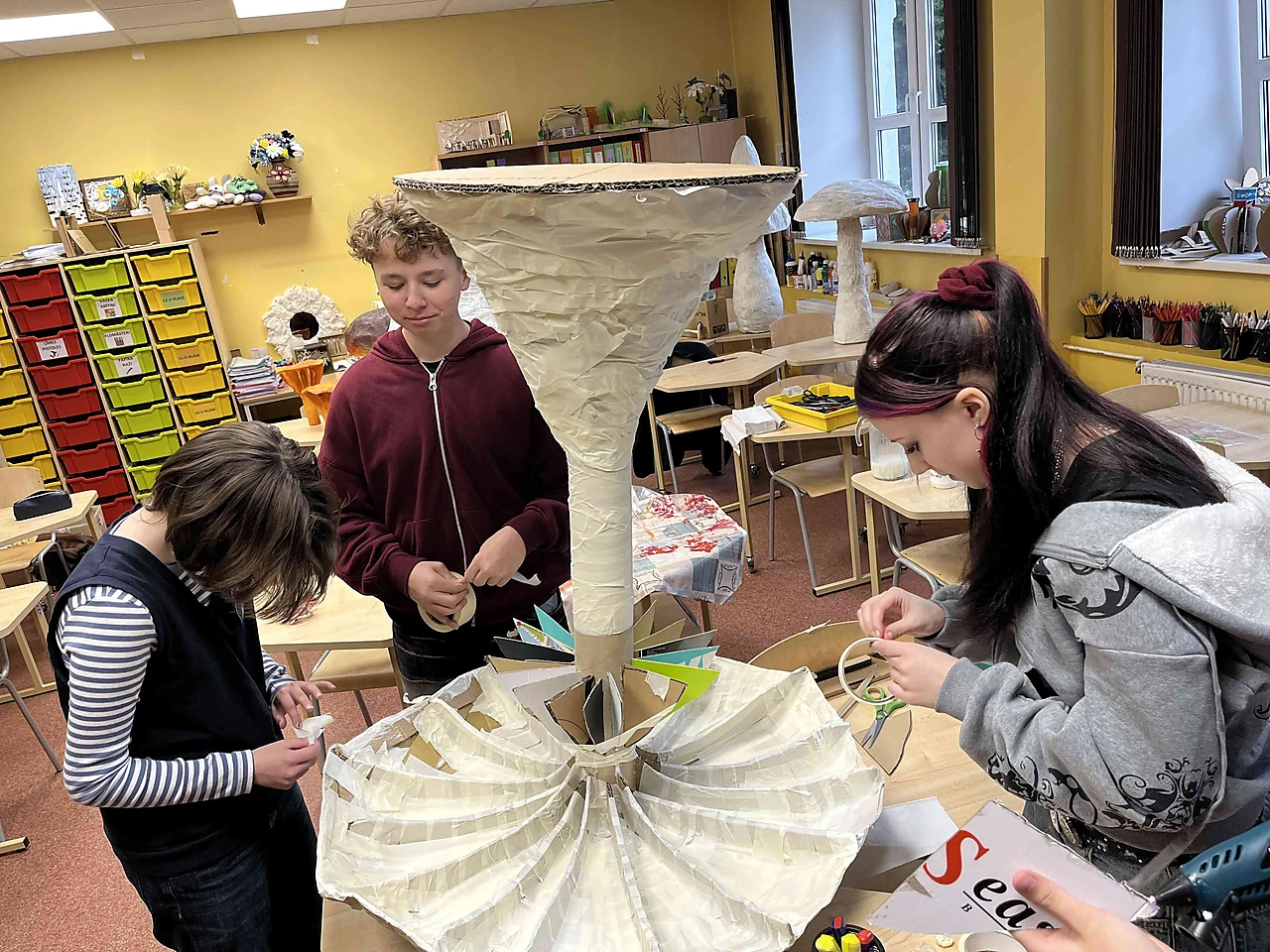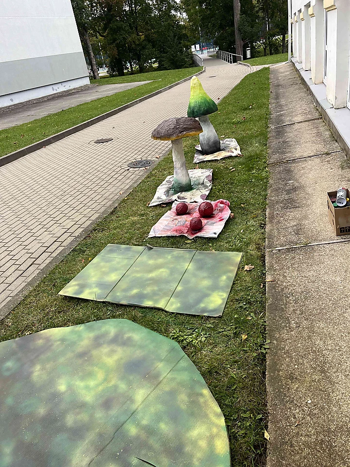 Modernās mākslas pulciņa dalībnieki septembrī radīja lielformāta instalāciju “Sēnes”. Darbs tapis no otrreizējiem materiāliem – kartona un žurnāliem, kas sākotnēji bija paredzēti izmešanai. Projekta mērķis bija attīstīt radošu pieeju materiālu pārstrādei un veicināt vides apziņu.