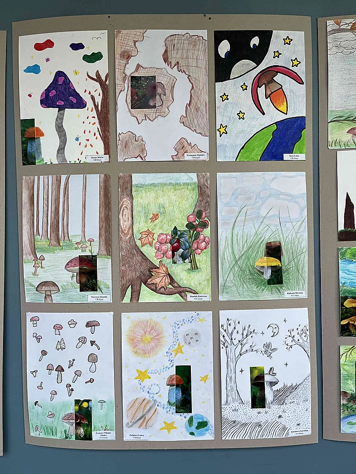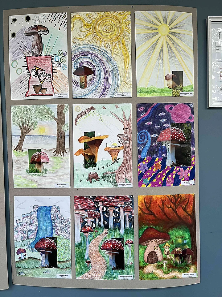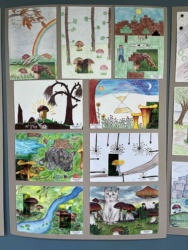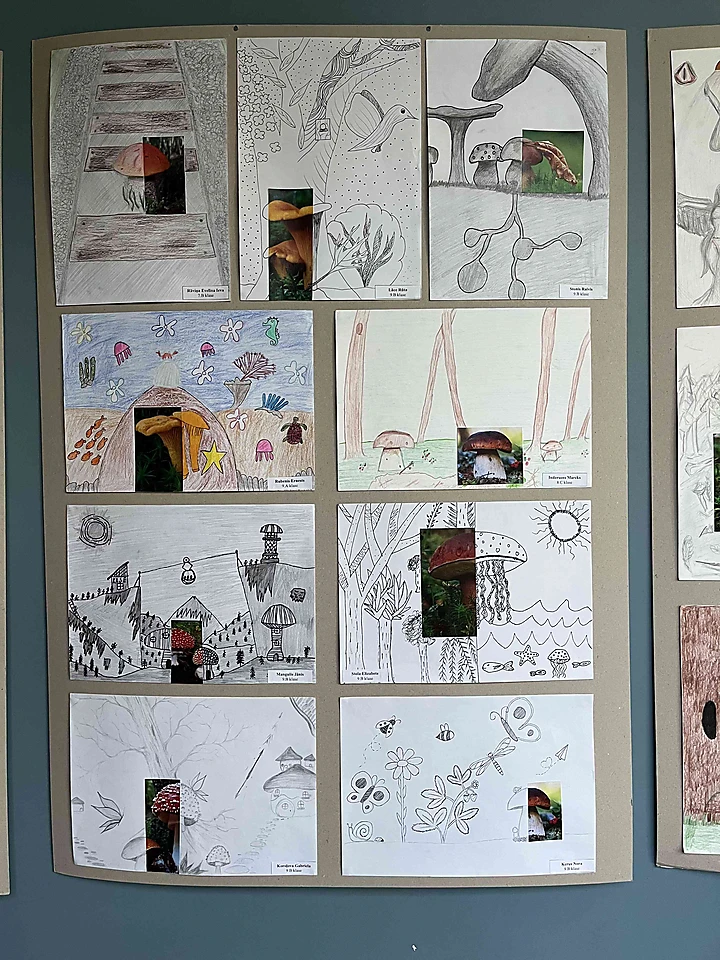 Savukārt kā iesildošais uzdevums pēc vasaras brīvlaika vizuālās mākslas stundā 7.–9. klašu skolēniem bija jāturpina zīmēt sēni un jāizveido tai reālistiska vai fantāzijas vide. Paldies skolēniem par radošumu un iesaisti!
