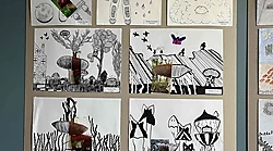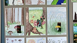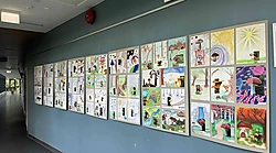 Skolēnu darbus iespējams apskatīt DzMC gaitenī pie sienas.