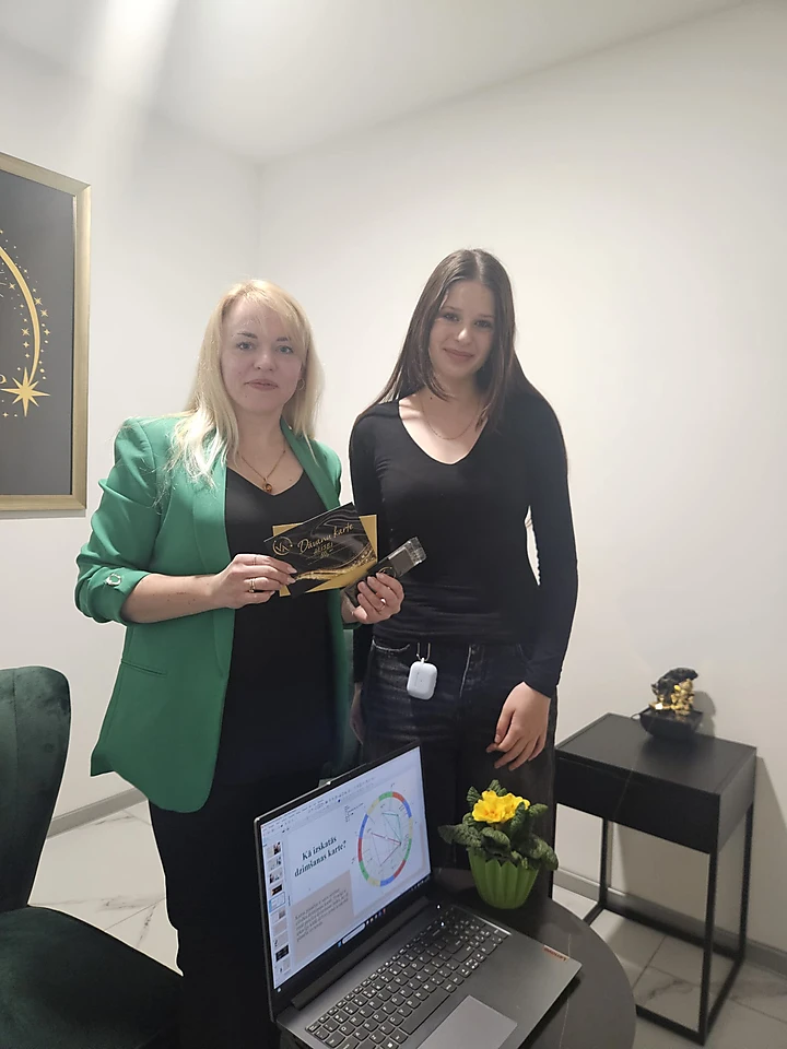 Mani arvien vairāk interesē zvaigznes, planētas un tas, kā tās ietekmē cilvēkus. Pateicoties ģimnāzijai, man bija iespēja ieskatīties astrologa profesijā. Sapratu, ka šī profesija mani interesē vēl vairāk, jo laiks pagāja ļoti ātri, kopā sarunājoties un uzzinot vairāk par astroloģiju. Uzzināju, ka šī profesija prasa gadiem ilgu mācīšanos, jo ir daudz kas jāapgūst, bet tas nozīmē arī to, ka mācīšanās process būs interesants un aizraujošs. Vēlos, lai astroloģija kļūst par manu nākotni. Milzīgs paldies MOT par iespēju ielūkoties manā sapnī!