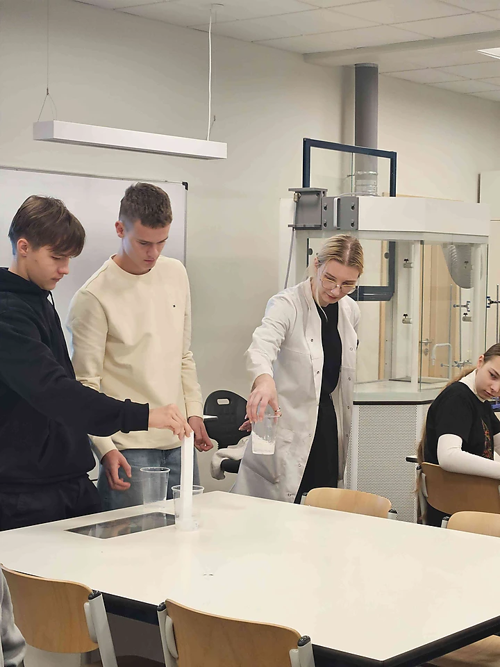 10.IV klases skolēni piedalījās izzinošā un praktiskā nodarbībā “Ķīmiskās reakcijas ātrums”. Nodarbības laikā skolēni atkārtoja un nostiprināja zināšanas par to, kādi faktori ietekmē ķīmisko reakciju norisi, un kā skābeklis mijiedarbojas ar dažādām vielām. Skolēni uzzināja, kā koncentrācija, temperatūra, katalizatori un virsmas laukums var būtiski mainīt reakciju ātrumu. Teorētiskās zināšanas tika papildinātas ar praktiskiem demonstrējumiem un diskusijām, kas ļāva labāk izprast procesus, kas notiek gan ikdienā, gan laboratorijā. Praktiskajā daļā skolēni paši veica eksperimentu, novēroja reakcijas norisi un rūpīgi pierakstīja mērījumus. Iegūtie dati tika analizēti un attēloti grafikā, kas palīdzēja vizuāli saskatīt reakcijas ātruma izmaiņas un izdarīt secinājumus. Nodarbība bija gan aizraujoša, gan izglītojoša, tā stiprināja skolēnu prasmes pētīt, analizēt un izprast ķīmiskos procesus, vienlaikus radot patīkamu un iedvesmojošu mācību atmosfēru.